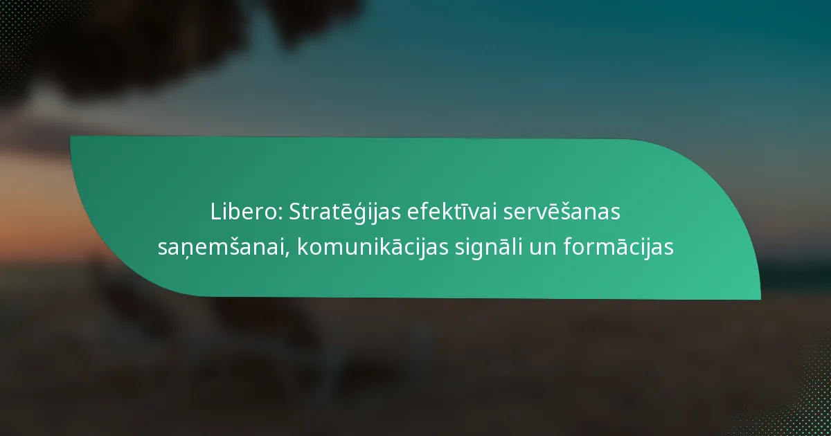 Libero spēlētājiem jāizmanto skaidri komunikācijas signāli, lai efektīvi koordinētu ar komandas biedriem serve pieņemšanas situācijās. Šie signāli uzlabo komandas darbu un nodrošina, ka visi ir informēti par saviem uzdevumiem un atbildību laukumā.