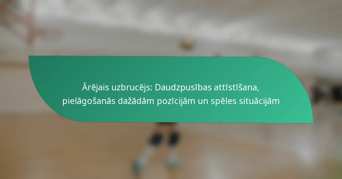 Ārējais uzbrucējs ir svarīgs spēlētājs volejbolā, atbildīgs gan par uzbrukuma, gan aizsardzības spēlēm. Šajā pozīcijā ir būtiski attīstīt daudzpusību, jo tas ļauj spēlētājiem pielāgoties dažādām lomām un spēles situācijām, uzlabojot viņu kopējo ieguldījumu komandas panākumos.