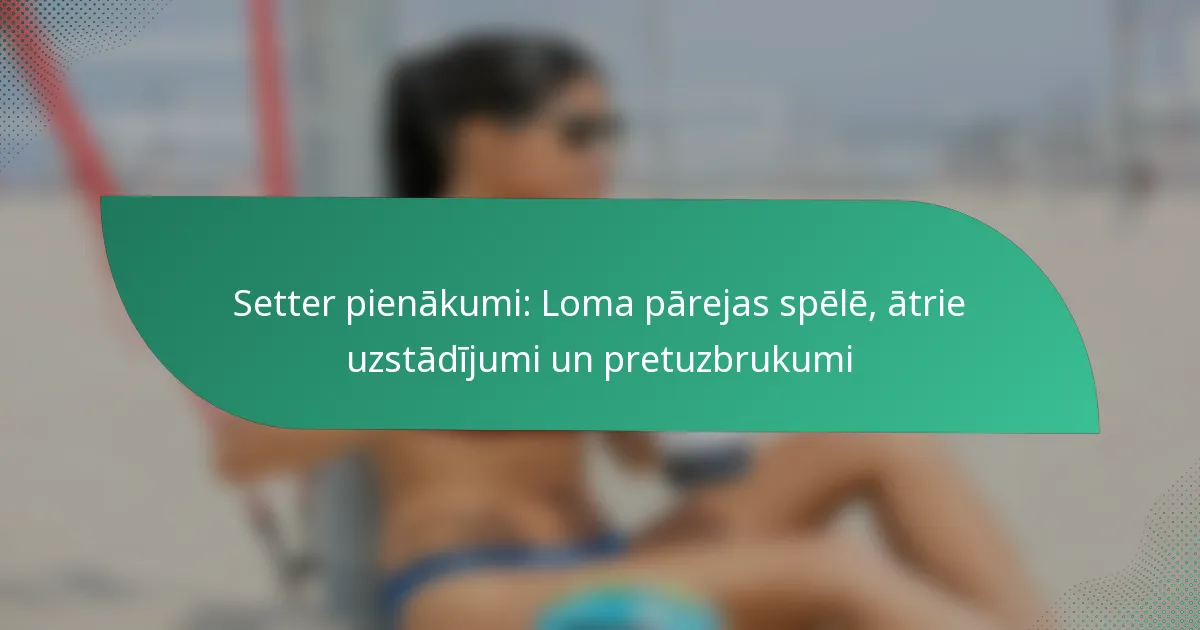 | Ātrs uzstādījums | Ātra bumbas piegāde uzbrucējam pie tīkla, pārsteidzot aizsardzību. | Palielinātas gūšanas iespējas. |